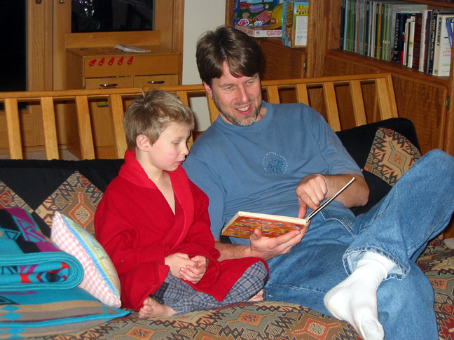He doesn't much like having his picture taken these days, but Bryden does still love his bedtime stories!