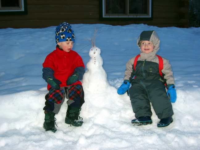 Gavin and Ian wanted a real snowman - ya gotta love the hair!