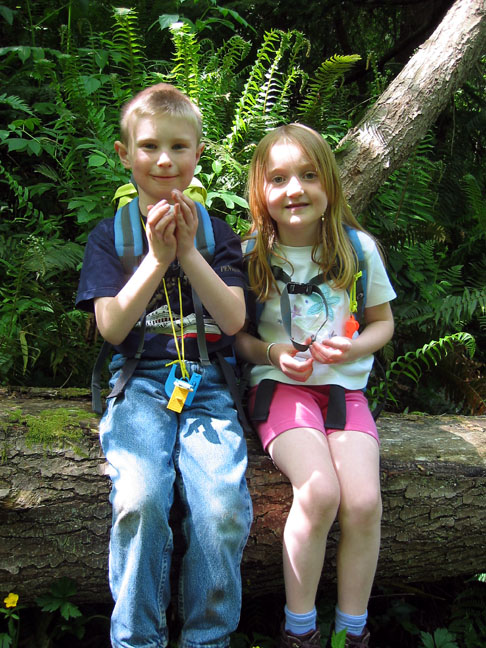 Bryden and Kelly, sitting on a log along the trail