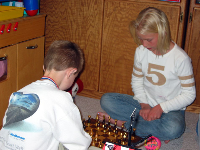 Bryden playing chess with his cousin Alex