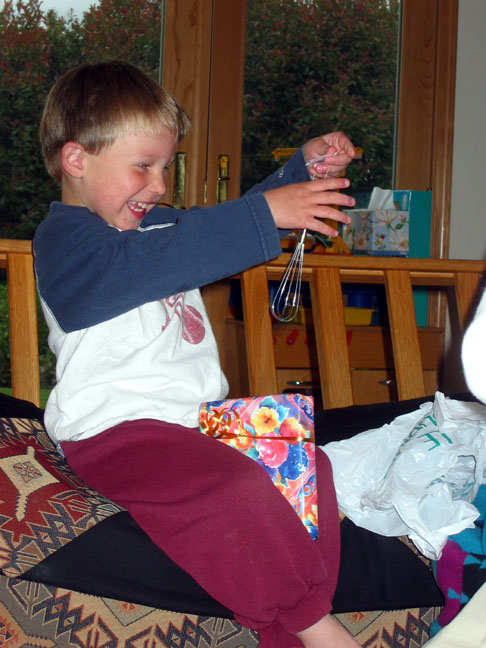 Not too many three year olds get excited abouting getting their own whisk for their birthday, but Gavin loves to stir his own cocoa in the morning, and he knows he'll get to use it for that!