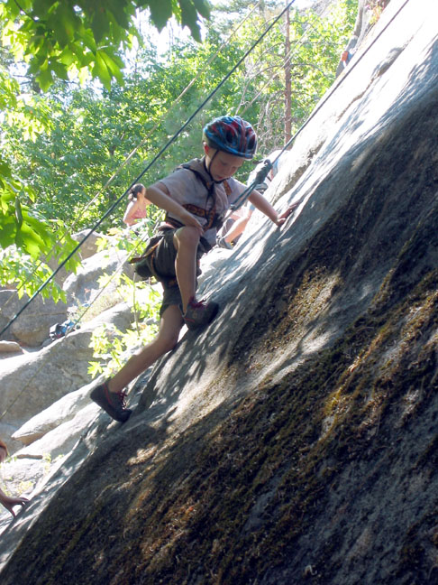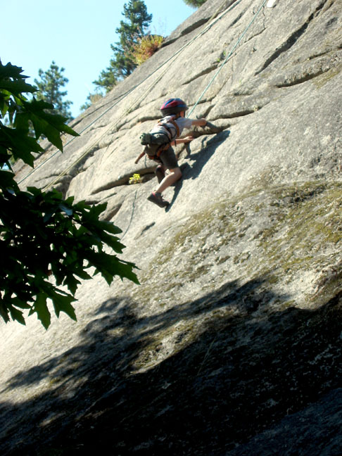 Bryden, starting up "Slippin' and Slidin'", a 5.7 slab climb at Roto-Wall