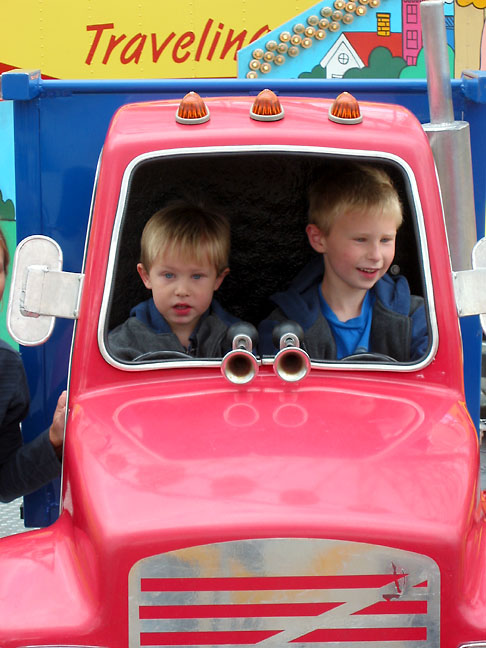 Gavin and Bryden on a truck ride