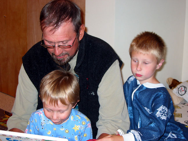 Uncle Byron stopped by, and he was in time to read us our bed time story