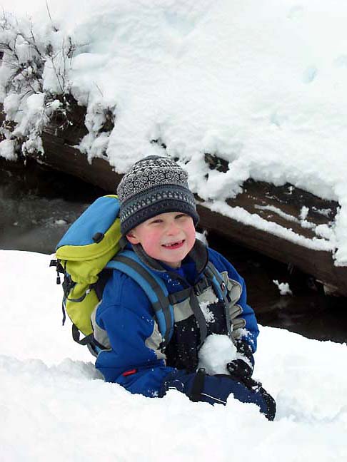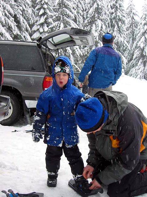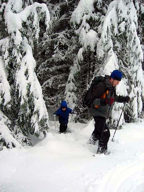 Gavin is snowshoeing great! Here he is, following in his daddy's footsteps!