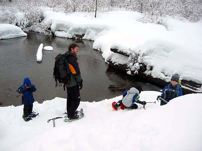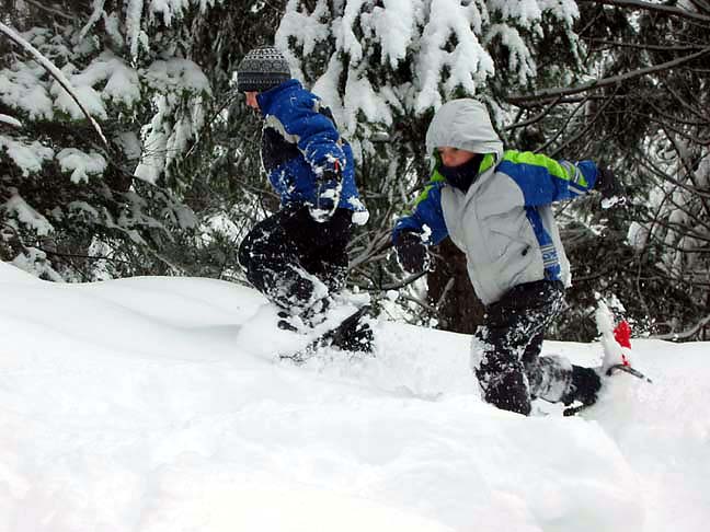 Bryden and Dario were too excited to walk around waiting for everyone to get ready to go - they had to run in their snowshoes!