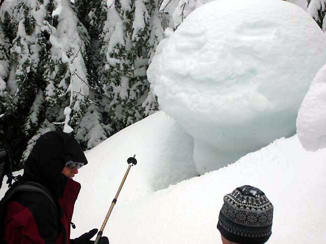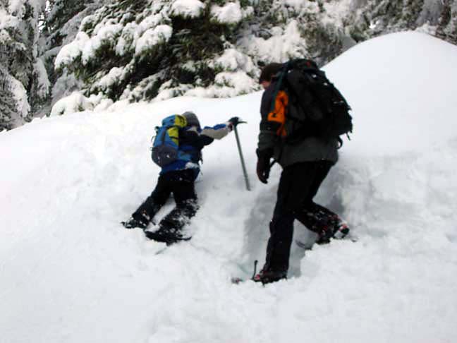 Sorry that it's a bit blurry, but here's Bryden and dad working on ice axe technique for ascending relatively steep snow.