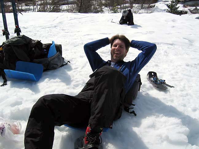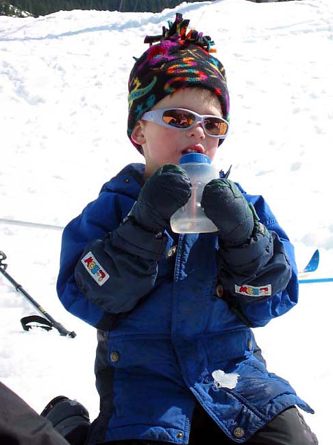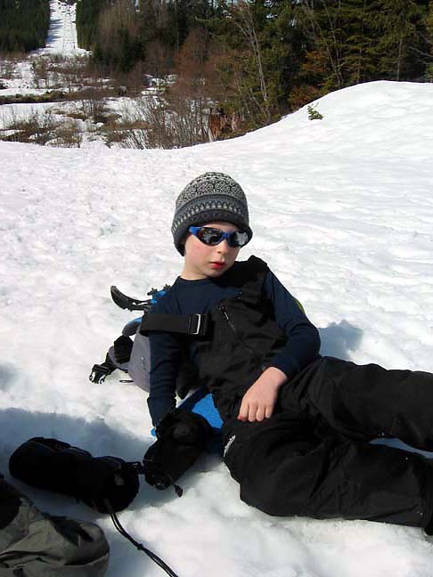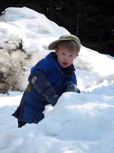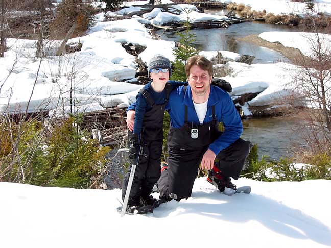 Bryden and Matt with Bryden's brand new ice axe - he's learning how to use it very quickly!