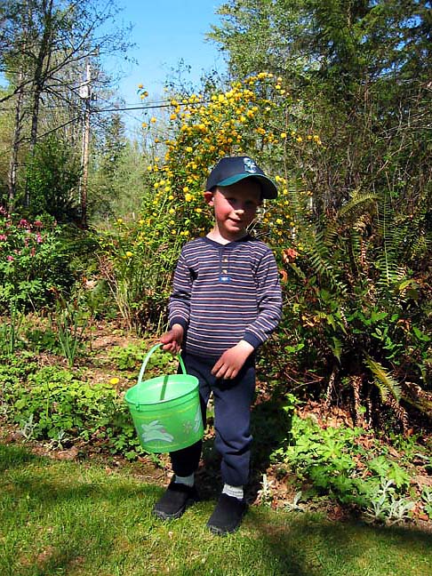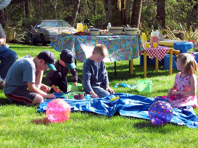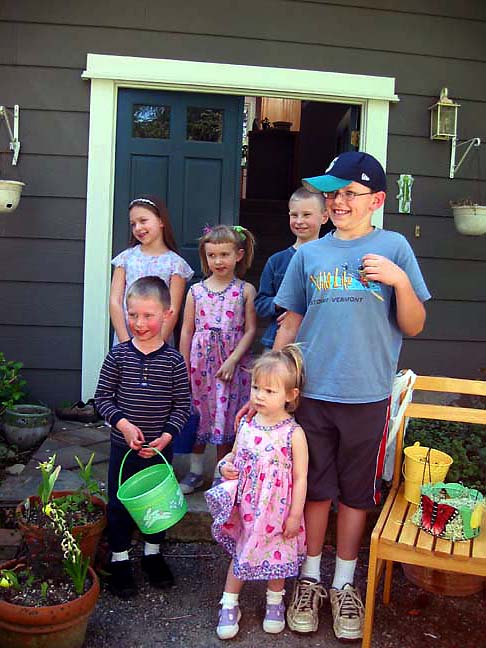The motely crew assembled for the start of the annual Easter Egg hunt at Aunt Carla and Uncle Kurt's