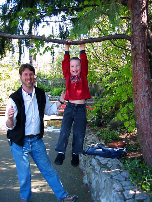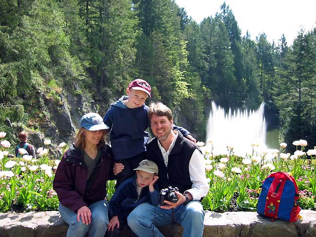 The whole family at Butchart - and, yes, Gavin is just as bored as he looks!