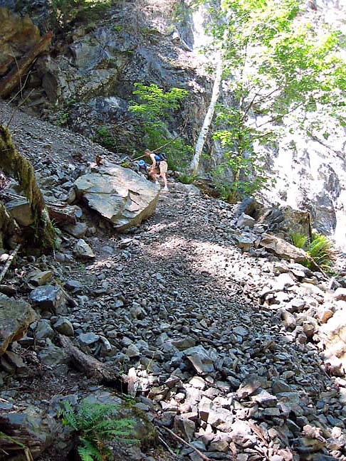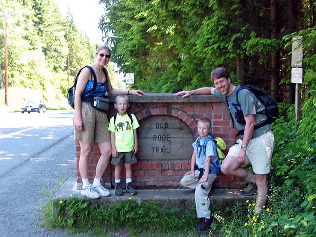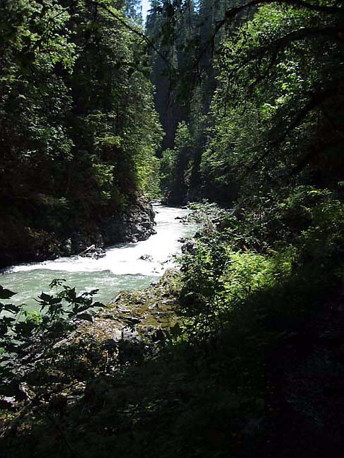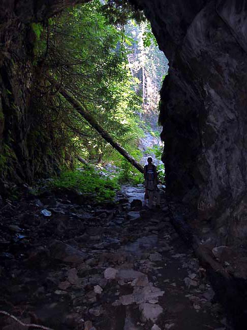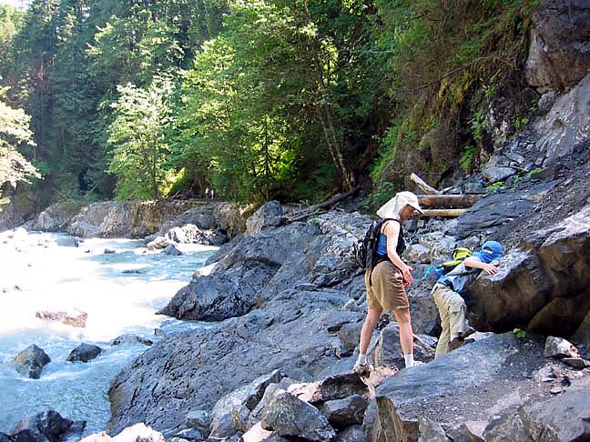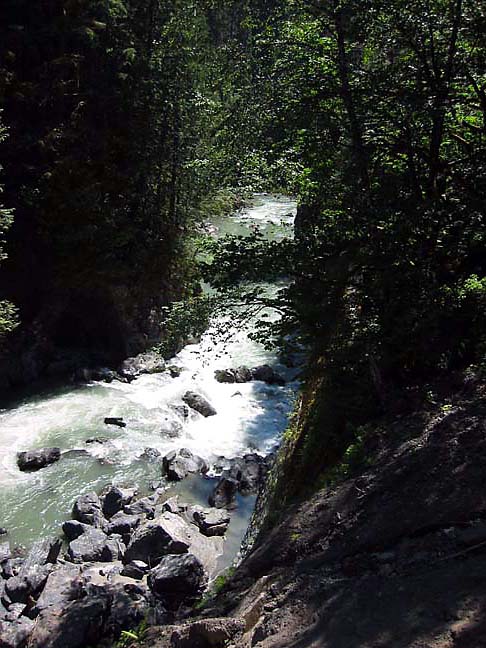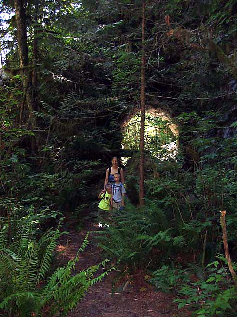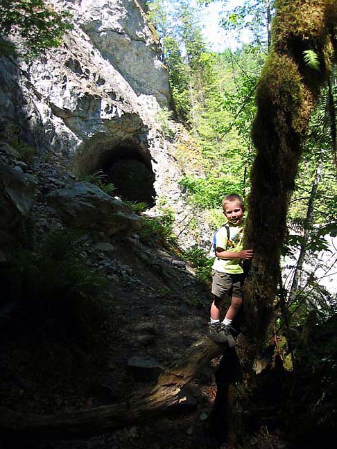 We went for a hike on Father's Day to the Robe Canyon. The canyon was carved by the Stillaguamish River, and at one time there was railroad track that ran just above the river - the train ran from Granite Falls to Monte Cristo. The spring floods have carved away much of the bank where the railroad ran, and the tracks are all long gone, but the train tunnels are still there to explore, and it's a great, cool hike for a warm summer's day!