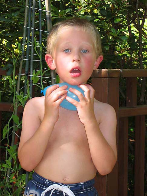 Warm weather and water balloons - Gavin thinks that's a great combination!