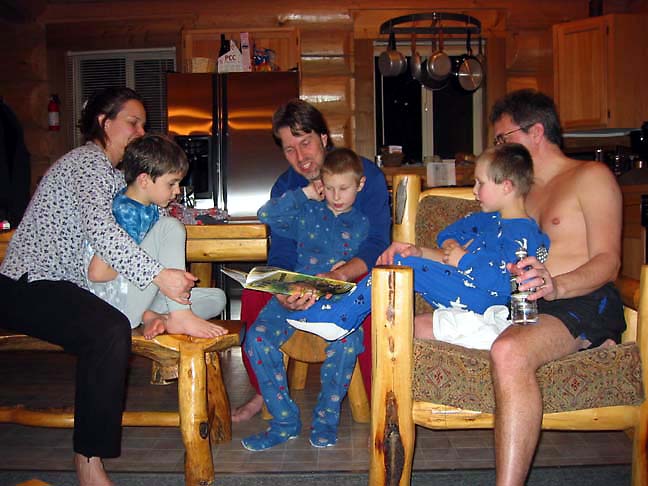 Dario, Bryden and Gavin all find laps while Matt reads a bedtime story