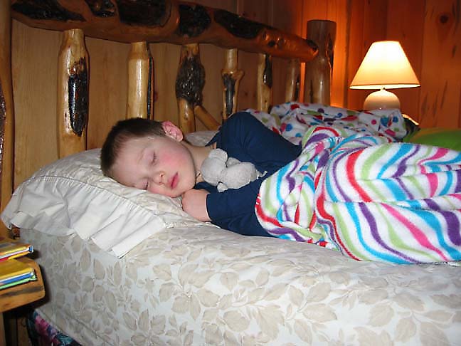 Gavin and mouse, snuggled down for the night