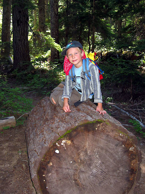 Gavin resting on a big log on the way out