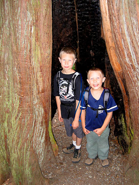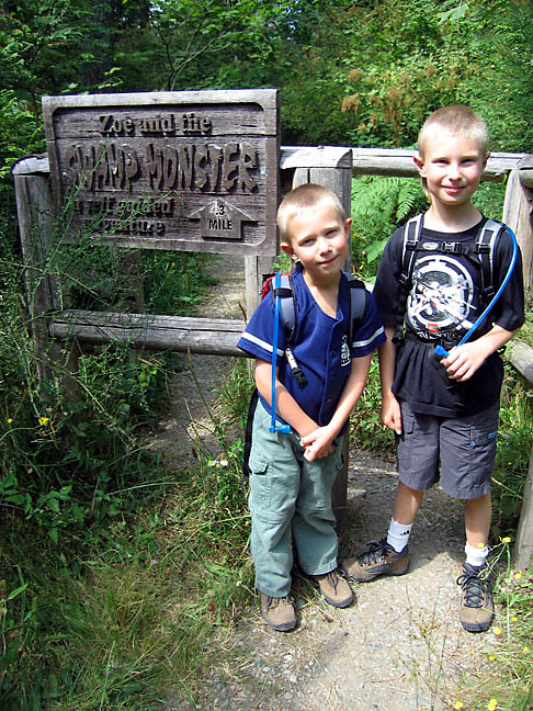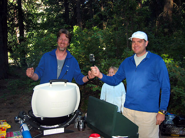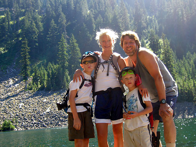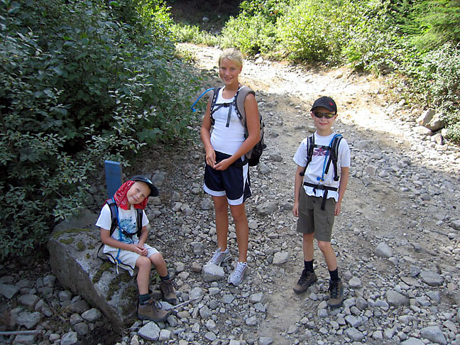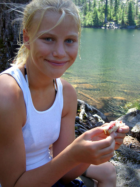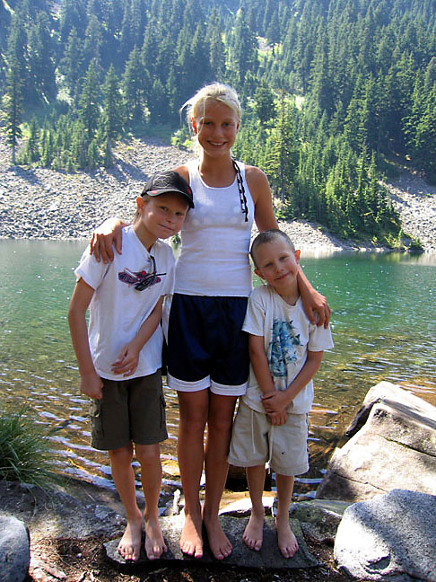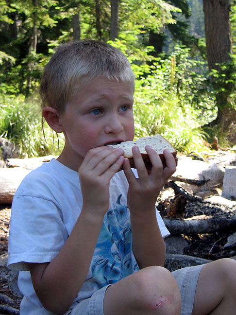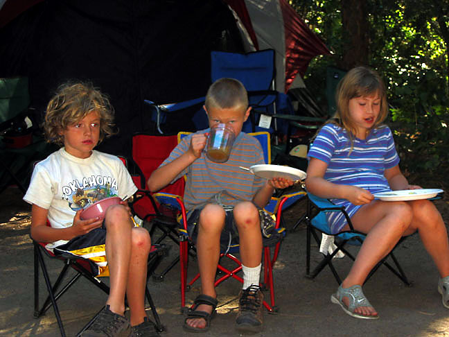 Wild man Alexander, one-shoe-on, one-sandal-on Bryden, and Lizzie chow down on breakfast