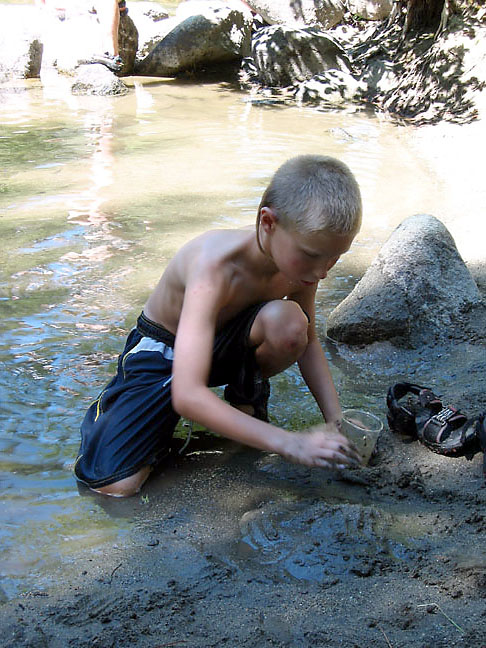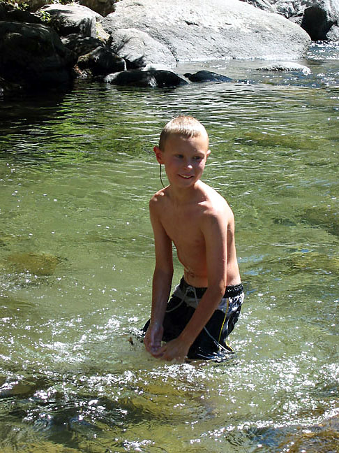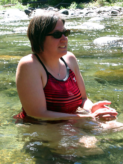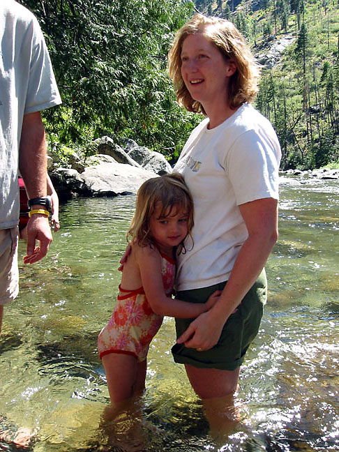 Caitlan wasn't so sure aboiut this swimming in the creek thing, but having momma near helped