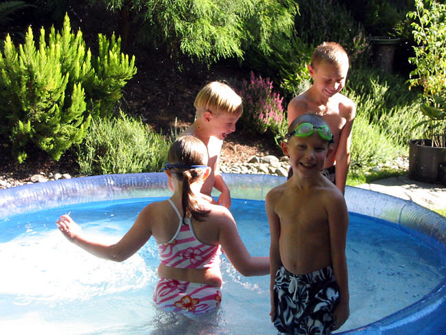 Bryden and Gavin playing with Lizzie and Ian in their pool on a nice September afternoon