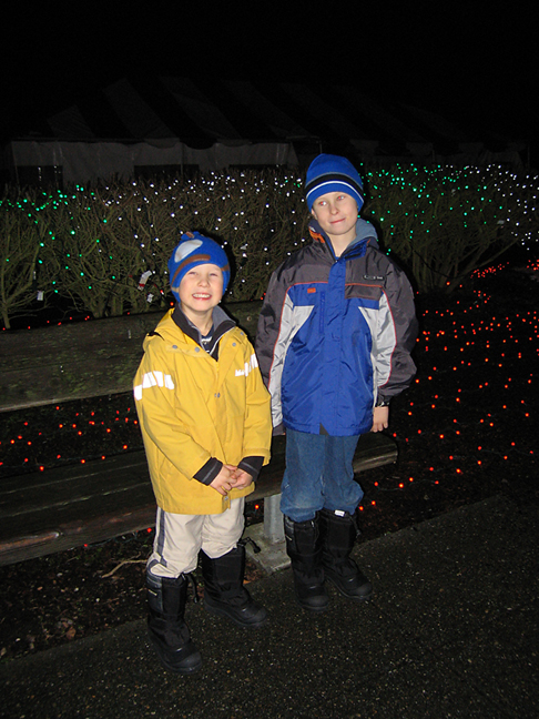 Bryden and Gavin bundled up for a chilly and damp evening