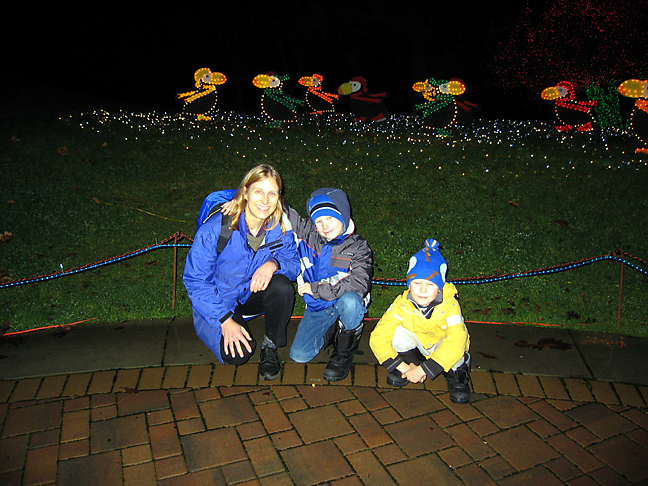 Mom and her guys in front of skating puffins