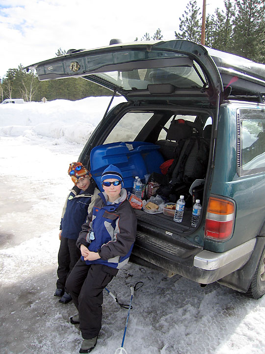 There's always snacks and cocoa back at the car after a ski outing!
