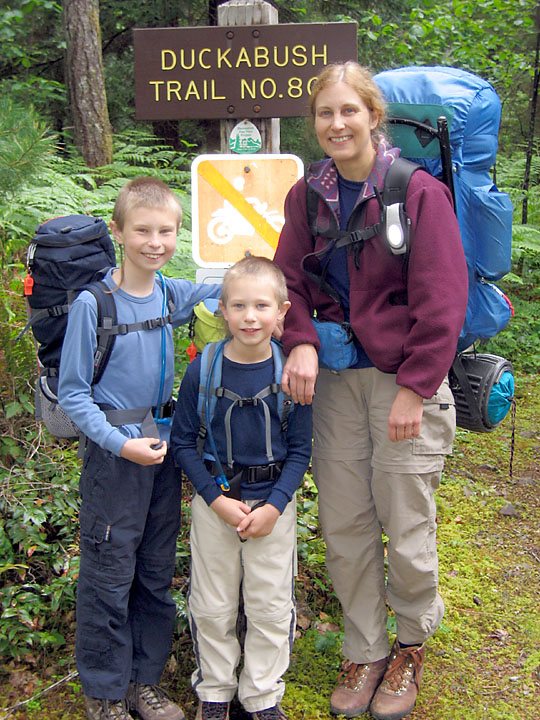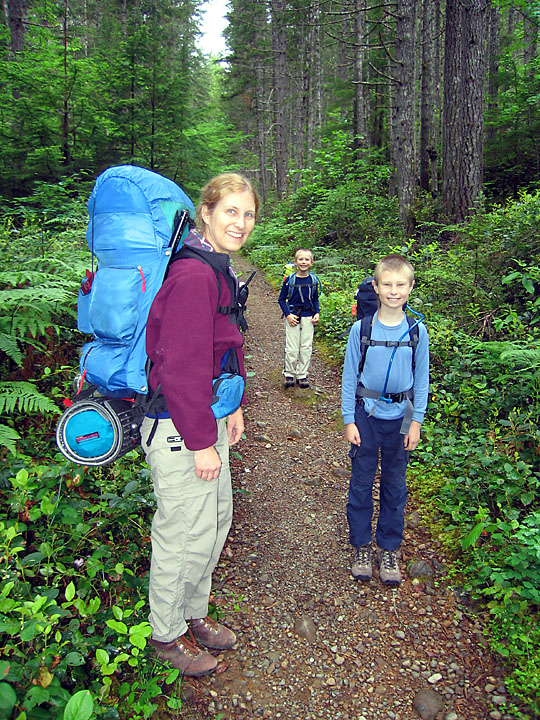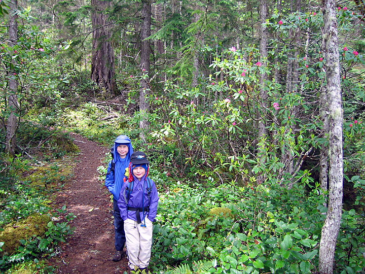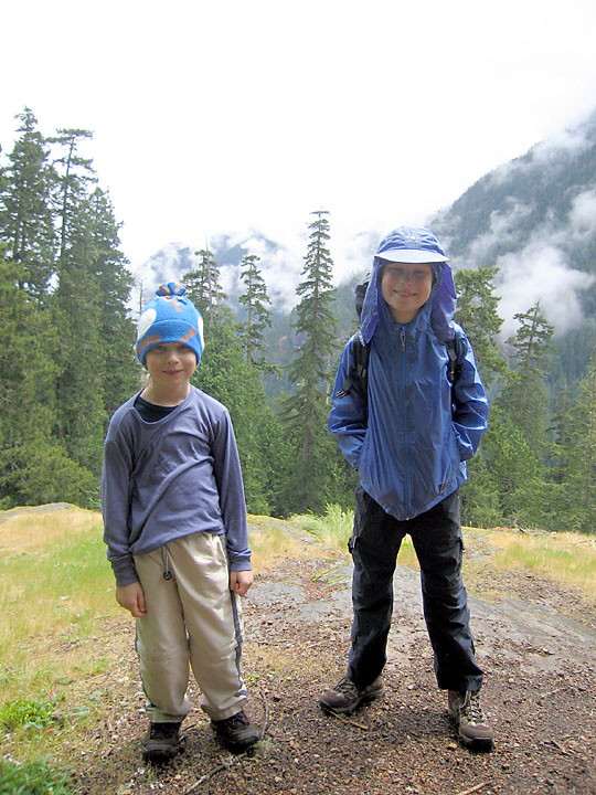Backpacking up the Duckabush River was a late spring tradition for Maren and I before we had the boys. This year for the first time we felt they were ready to make the trek (with full overnight packs!) up and over Little Hump and Big Hump, and down into the old growth forest in the Duckabush River valley. Unfortunately, it was not to be - the rain gods conspired against us and shortly after we left the car it began to rain. And rain. And rain! At five miles in, at the top of Big Hump, Maren and I decided it wasn't going to let up for the duration of the weekend and we turned the boys around and marched five miles back out. The boys did great, putting in 10 wet miles instead of the planned 6 to a camp site - we'll try it again next year!
