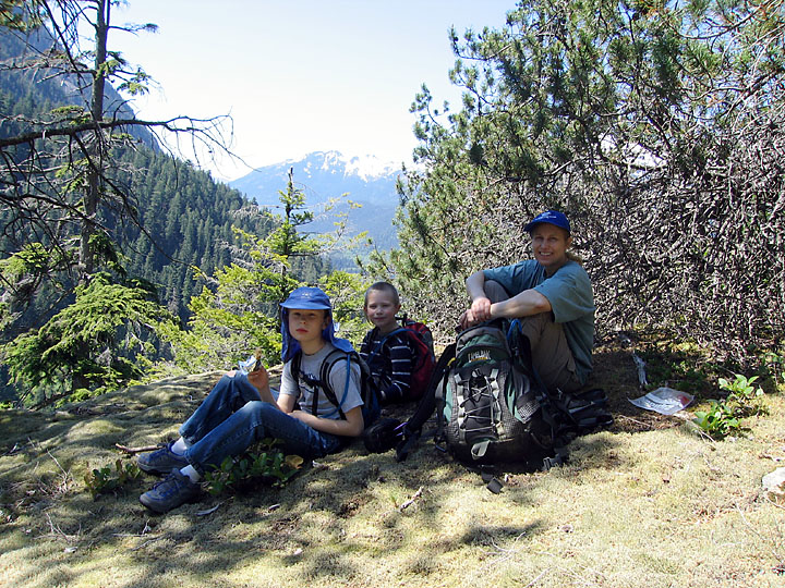 Maren and the boys eating lunch on top