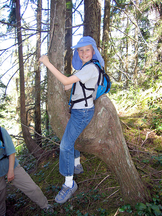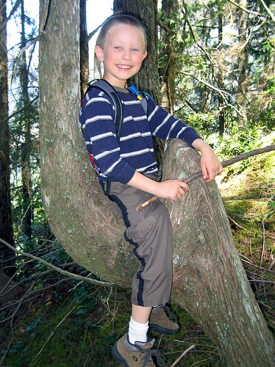We found this cool tree on the way down that looked like an animal to be ridden. Gavin took his turn...