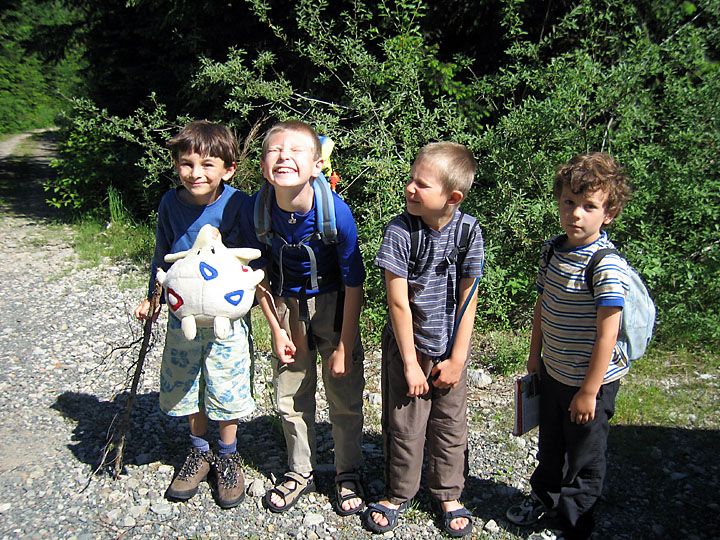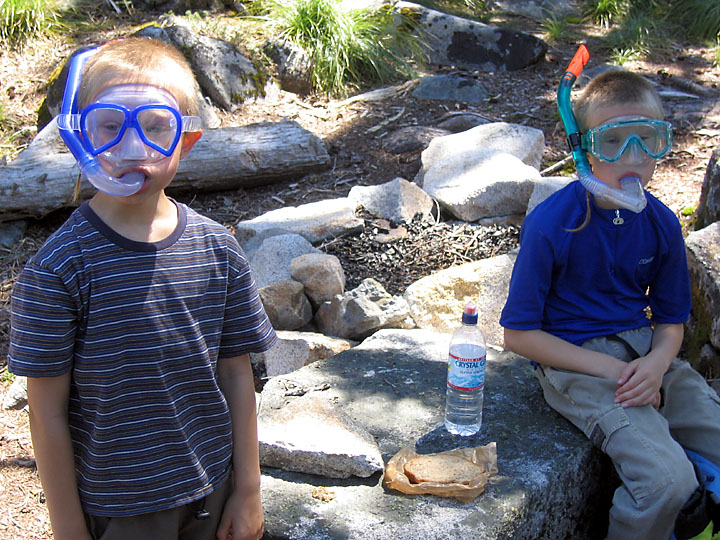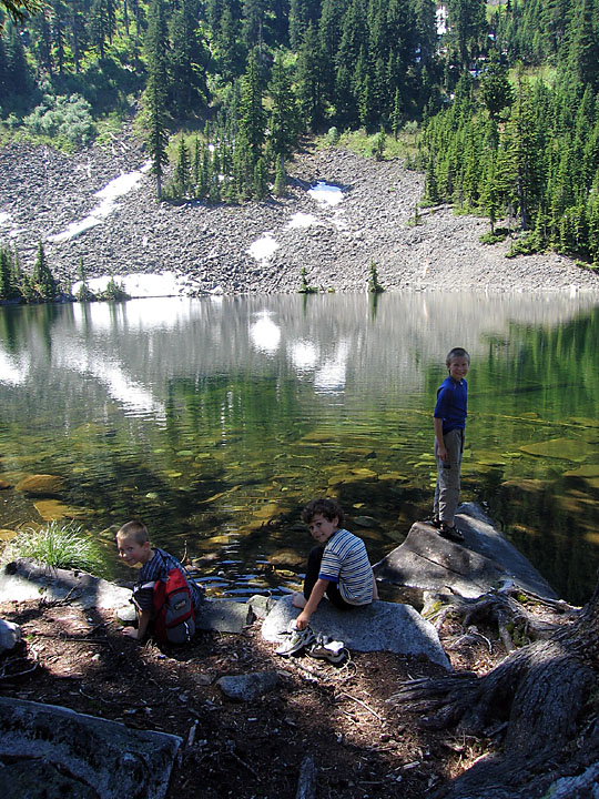 The guys being silly at the trailhead (yes, the stuffed Pokemon doll went all the way to the lake with us!)