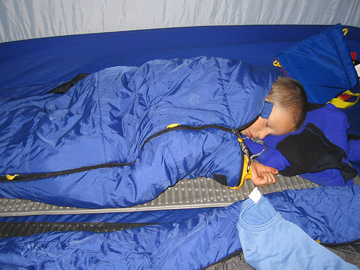 A guy can get really tuckered out after all that hiking and swimming and scrambling and berry picking - Gavin, sound asleep in the tent