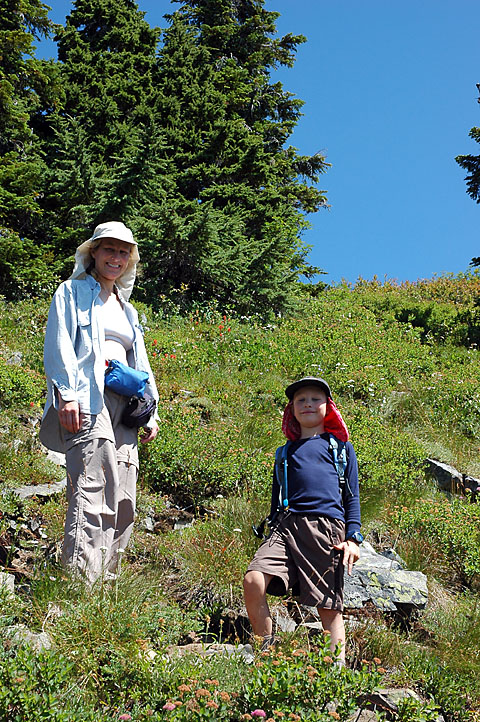 Maren and Gavin about to start the last steep, meadowy bit to the summit