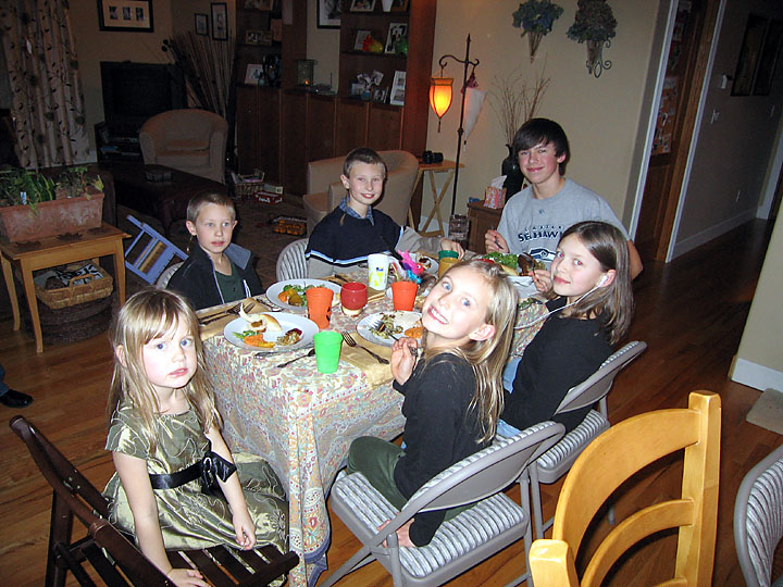 The Robertson cousins at Thanksgiving. Going around the table are Angelina and Eleanor, Danica and Daycen, and Bryden and Gavin