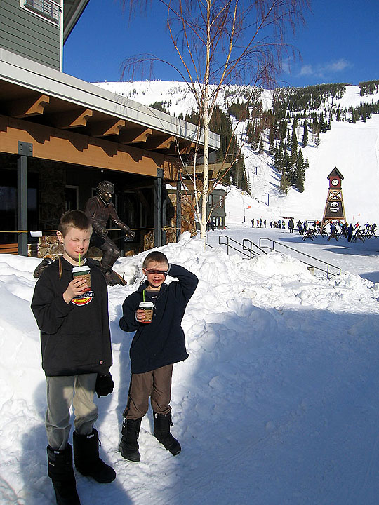 We did a ski trip to Schweitzer with Maren's folks this month. The weather was pretty foggy most of the days, but we got blue skies and sunshine our last morning there - maybe too much sunshine! The boys are kind of squinting!