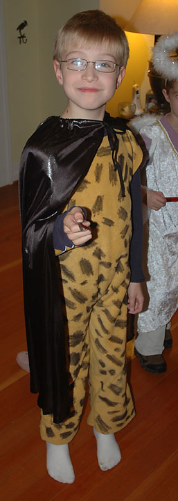 With a little bit of seamstress help from mom, here's how he looked - pretty cool!
