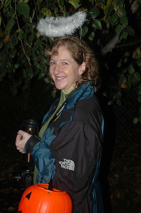 Brenda was all set with her travel mug full of wine, a pumpkin full of treats, and is her halo slightly tipping? I think so!