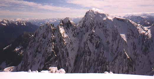 The only thing blocking our view was the awesome north face of Mt. Index to the east, barely a mile away. Knowing we no longer needed to rush, since the traverse was no longer on the agenda, we prudently spent the next two hours of our lives basking in the sun on the summit, playing "name that peak", taking lots of pictures, and just enjoying what was one of the most beautiful days I've ever had in the mountains!